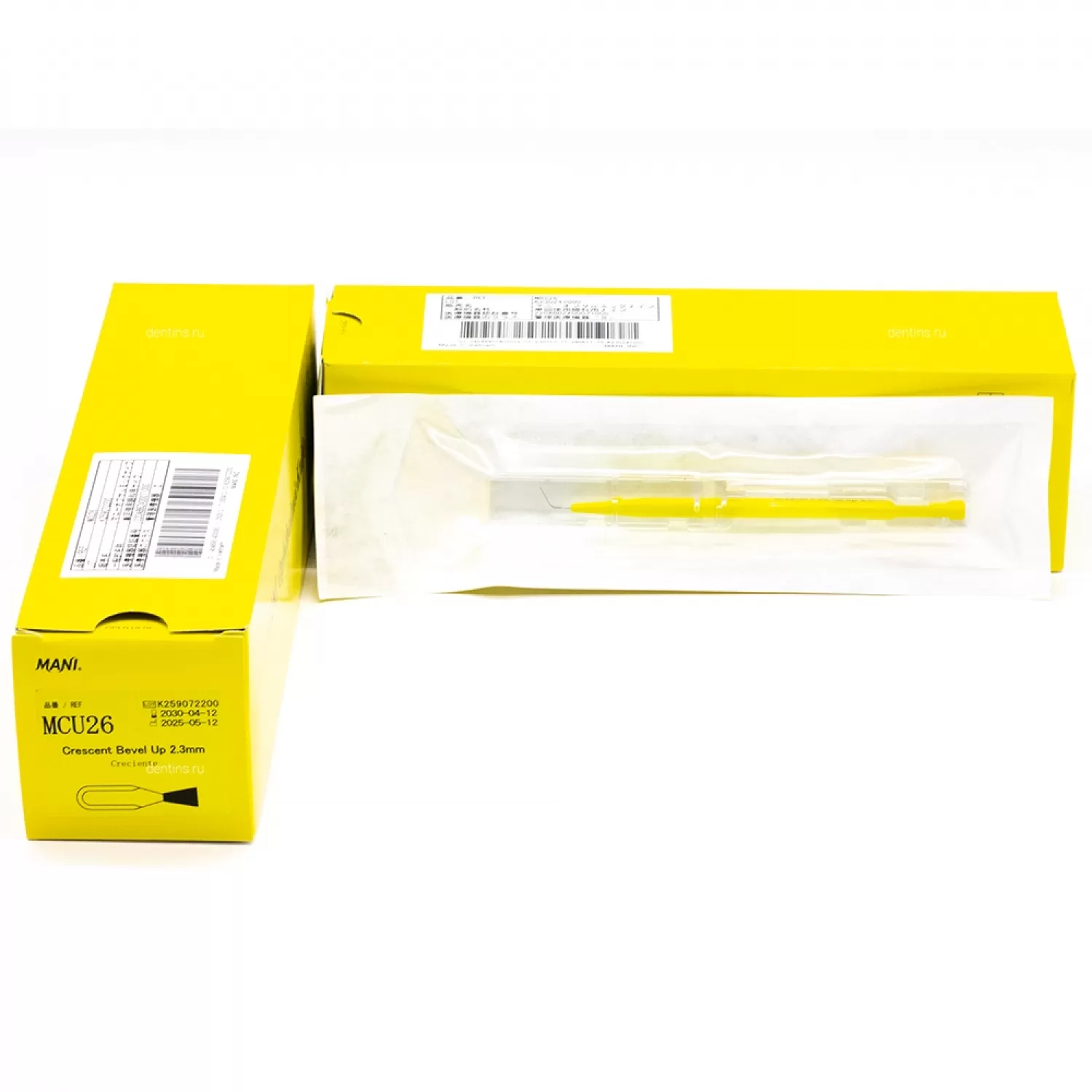В набор входит скальпель-расслаиватель микрохирургический, офтальмологический Mani, 2,3 мм - 1 шт.