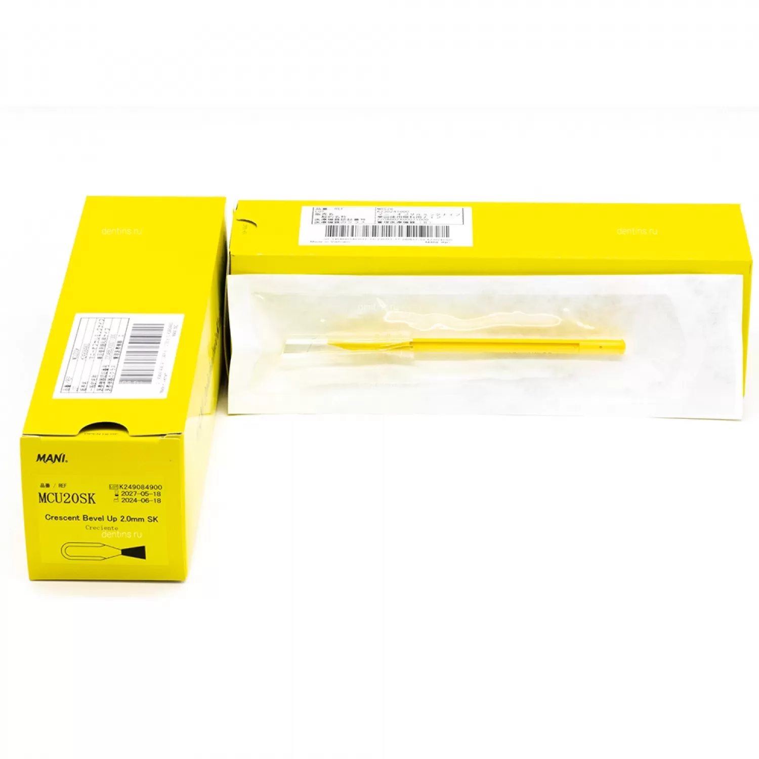 Cкальпель-расслаиватель микрохирургический, офтальмологический с колпачком Mani, 2 мм, 6 шт