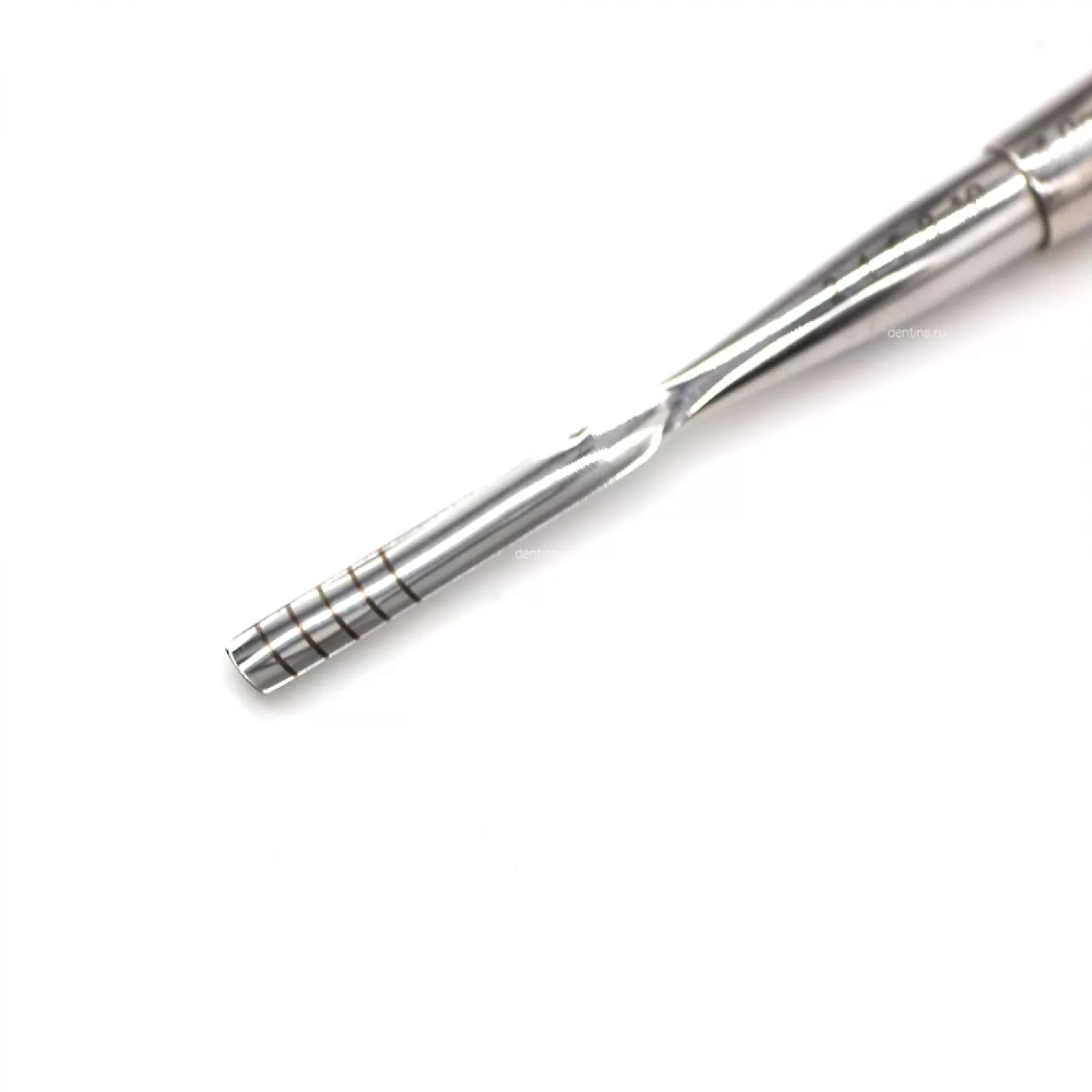 Прямое долото 4 мм с выемкой предназначено для выравнивания костного рельефа и расщепления альвеолярного отростка. Конструкция предусматривает специальную выемку, обеспечивающую комфортный хват при эксплуатации. Используется в сочетании с хирургическим молотком.