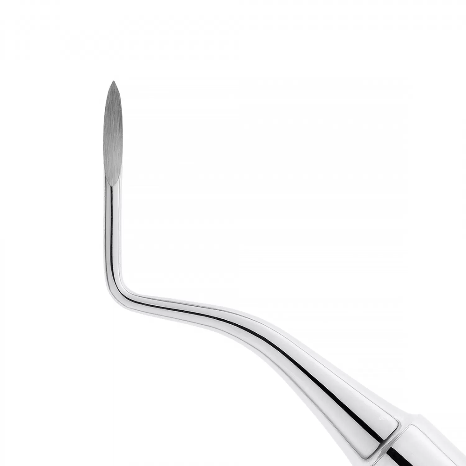 На поверхности ручки элеватора расположены грани, которые обеспечивают надежную фиксацию и предотвращают скольжение инструмента в руке. Благодаря такой ручке элеватор позволяет снизить нагрузку на руки и способствует успешному проведению операции.