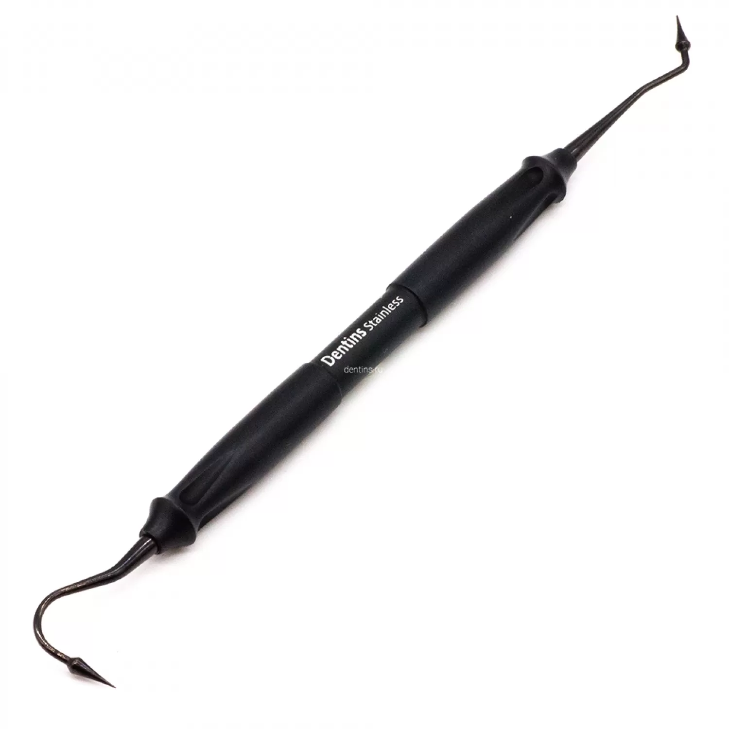 Рабочая часть инструмента имеет напыление из карбида титана черного цвета, что существенно повышает ее твердость и износостойкость. Матовая черная поверхность снижает эффект бликования, обеспечивая комфортные условия работы с оптическим увеличением и микроскопом.