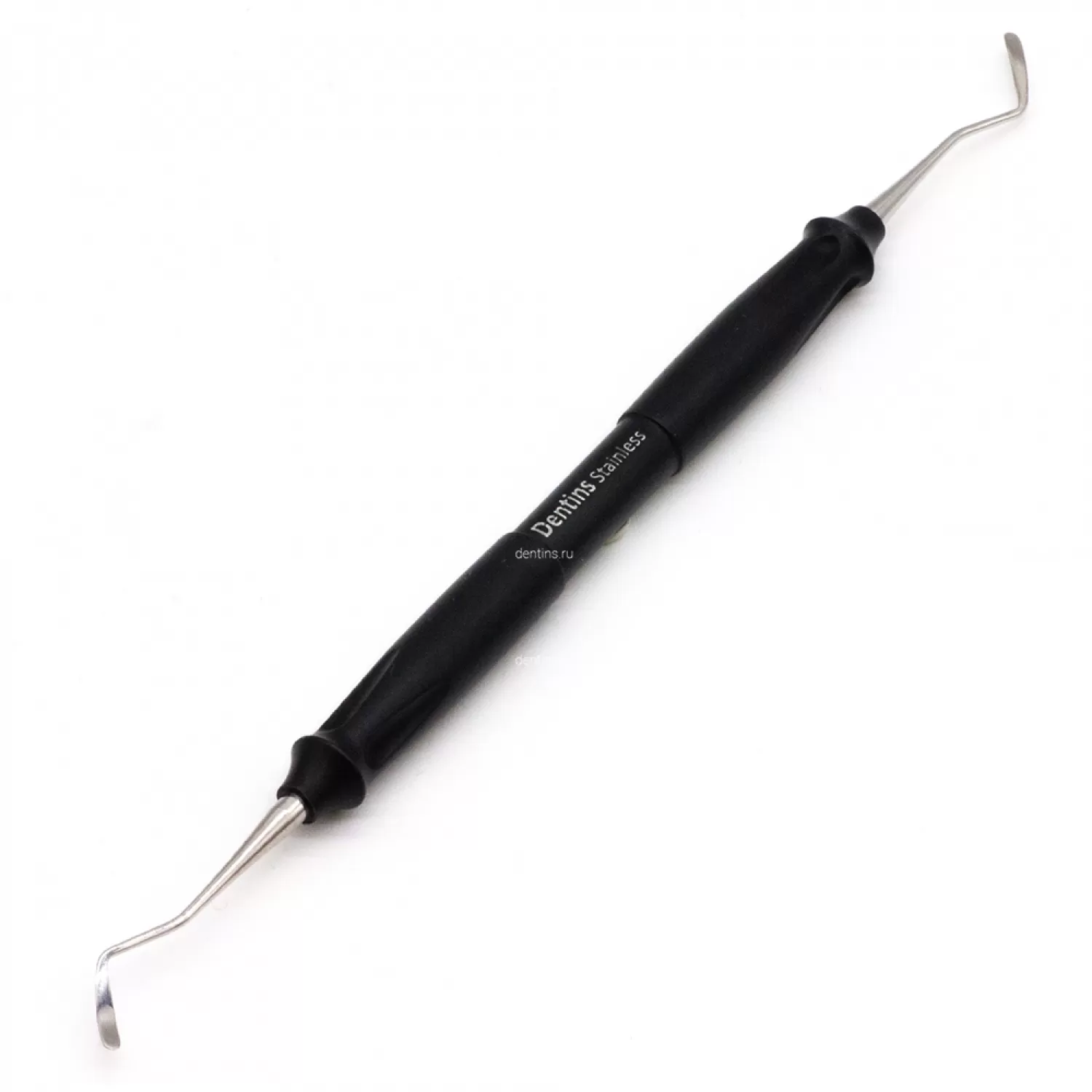Двусторонняя гладилка предназначена для комплексной манипуляции на зубную поверхность. Например, очищение, внесение, моделирование или сглаживание материала. Рабочие части выполнены в виде симметрично расположенных закругленных форм, шириной 2 мм и толщиной 4 мм. Изгиб кончиков относительно рукоятки позволяет эффективно работать в труднодоступных дистальных участках.