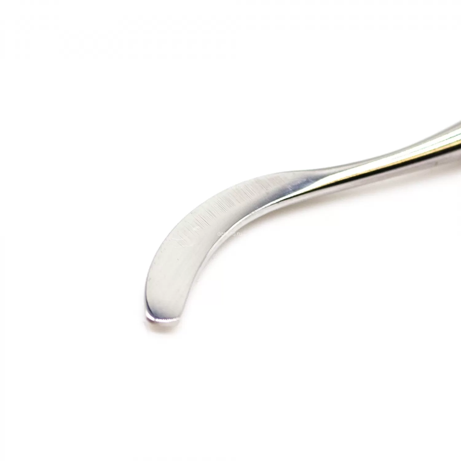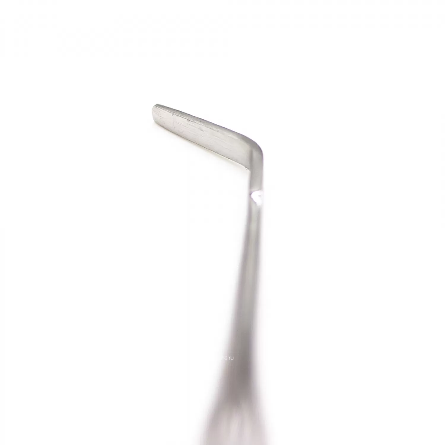 Инструмент оснащен двумя рабочими частями. Один из них имеет изогнутую серповидную форму с заостренным концом, что обеспечивает удобство и точность при работе. Вторая, дистальная часть, предназначена для проведения работ в дистальных отделах, где требуется особый доступ.