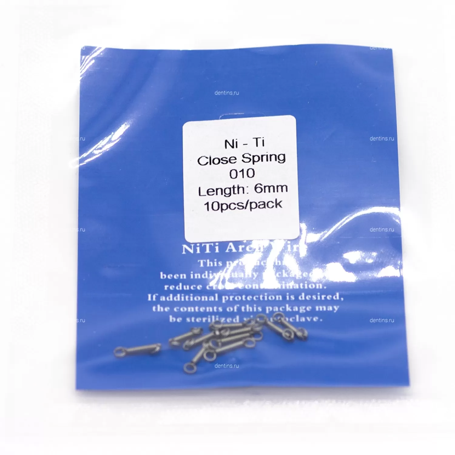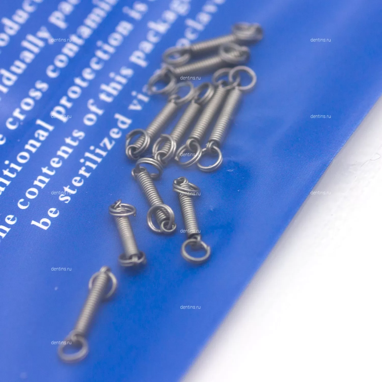 Пружина имеет удобные ушки-кольца с двух сторон, что позволяет легко и надежно зафиксировать ее на различных ортодонтических элементах.