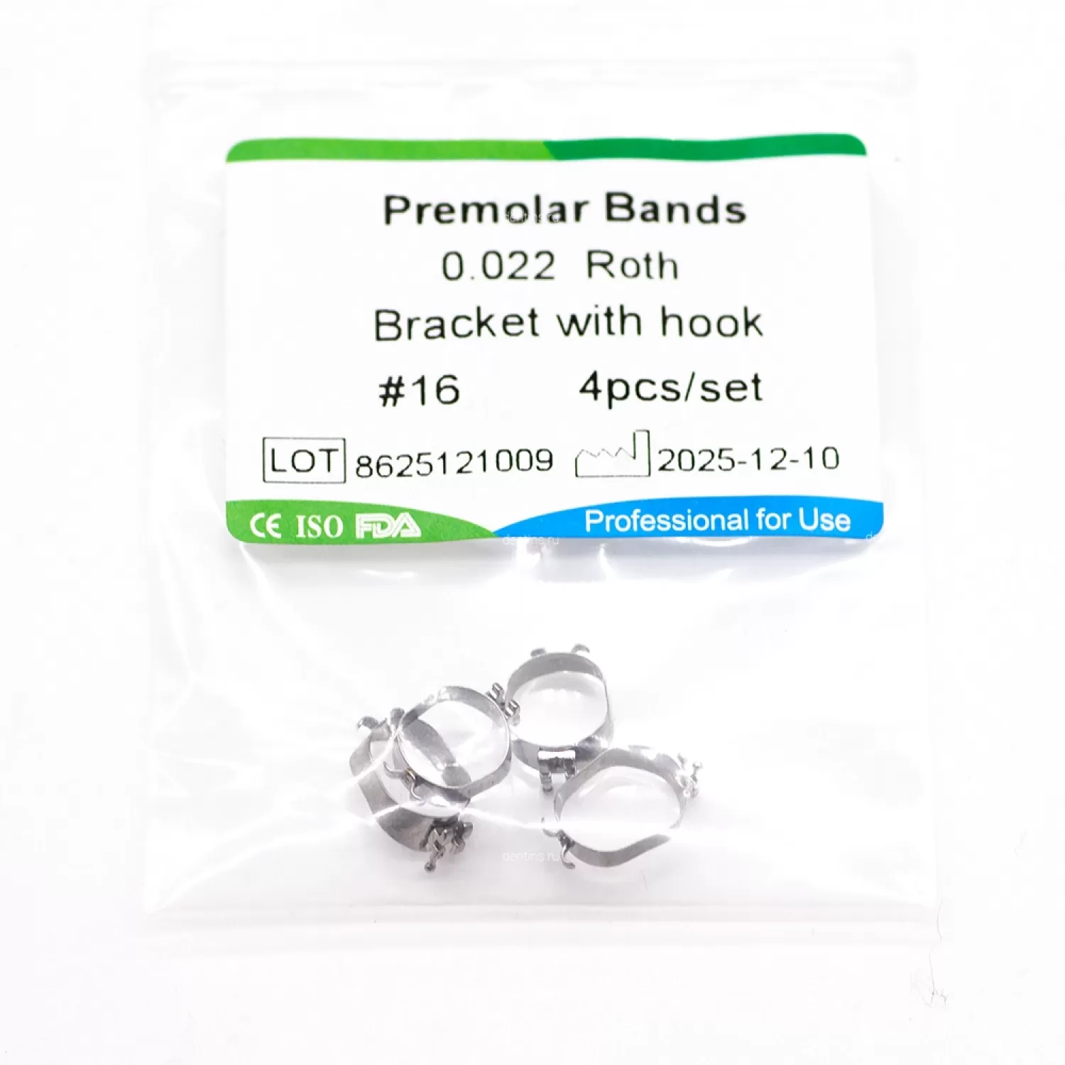 В комплекте ортодонтические кольца 16 размера - 4 шт.