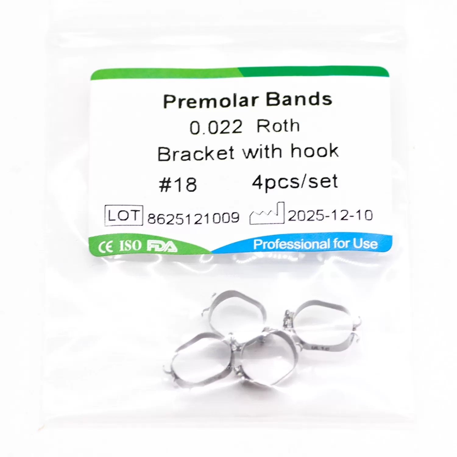 В комплекте ортодонтические кольца 18 размера - 4 шт.