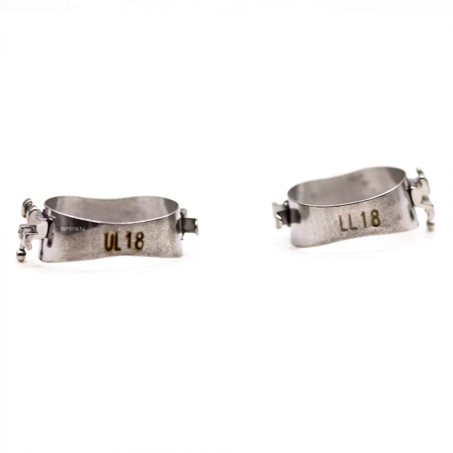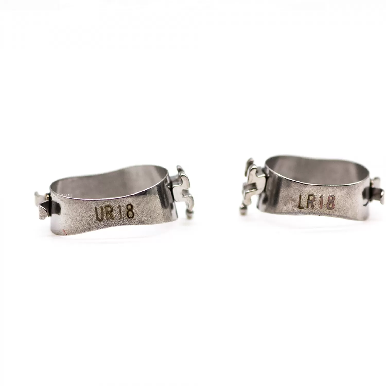 На вестибулярной стороне кольца плотно припаян паз для дуги, а с внутренней стороны есть крючки для доп элементов (эластические цепочки и тяги).