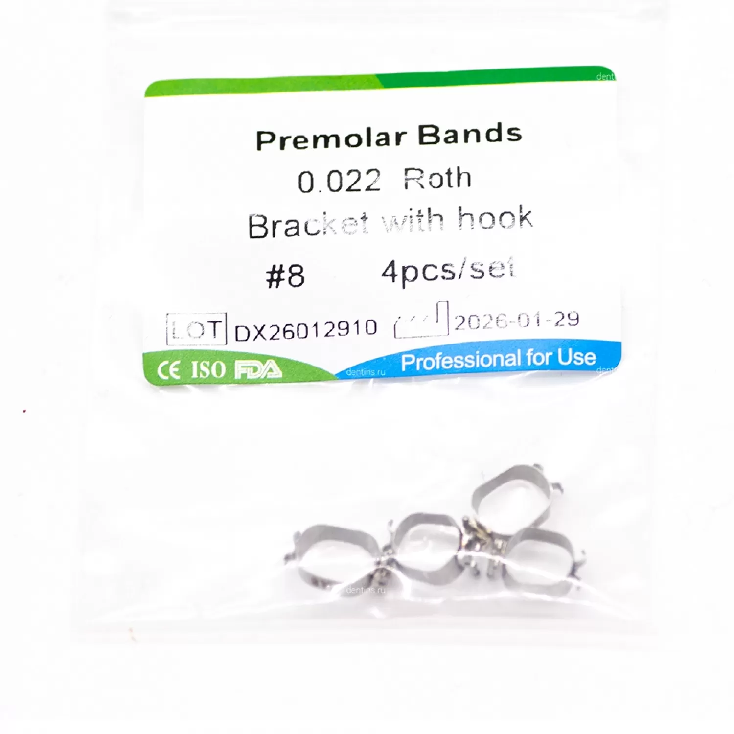 В комплекте ортодонтические кольца 8 размера - 4 шт.