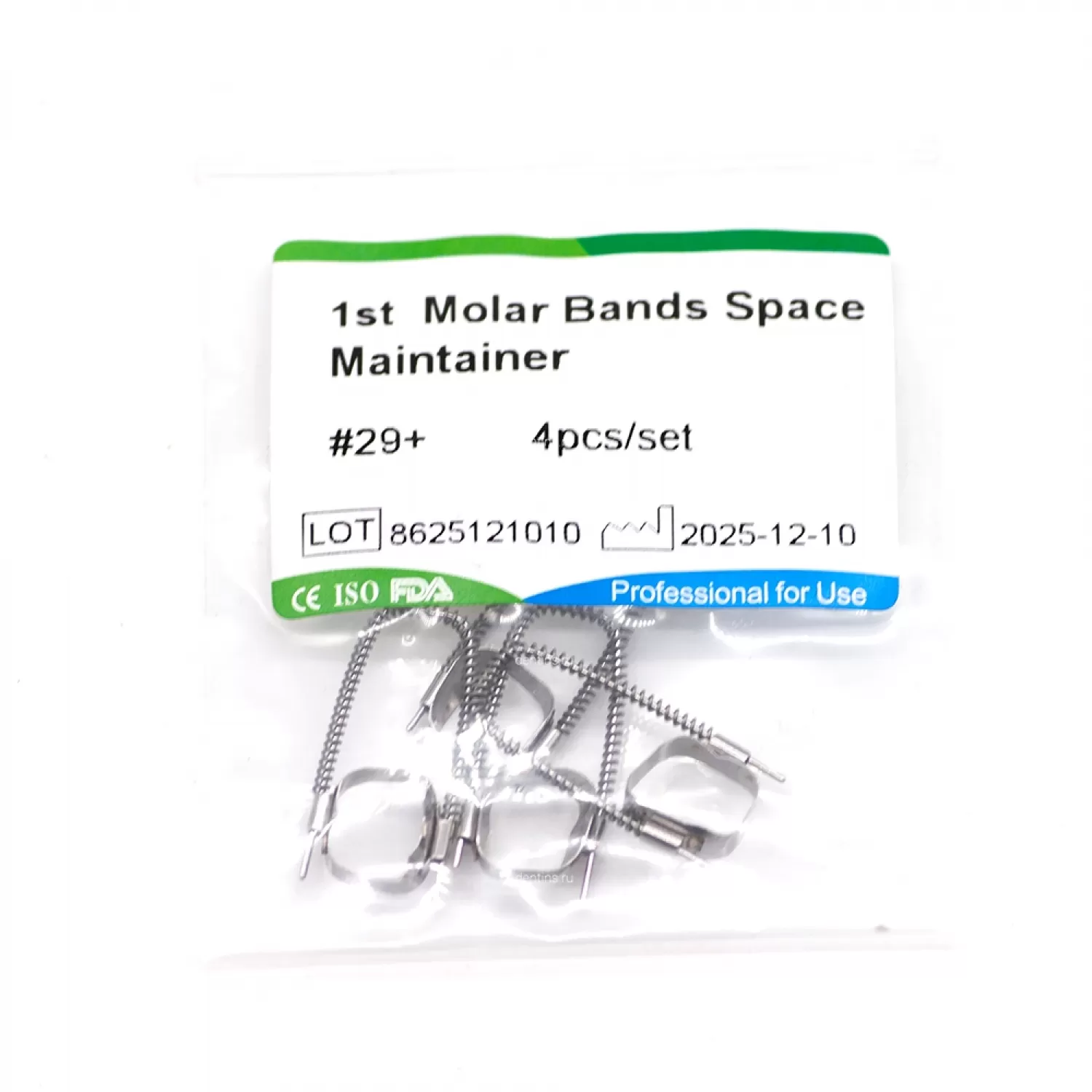 В комплекте ортодонтические кольца с петлей 29+ размера - 4 шт.