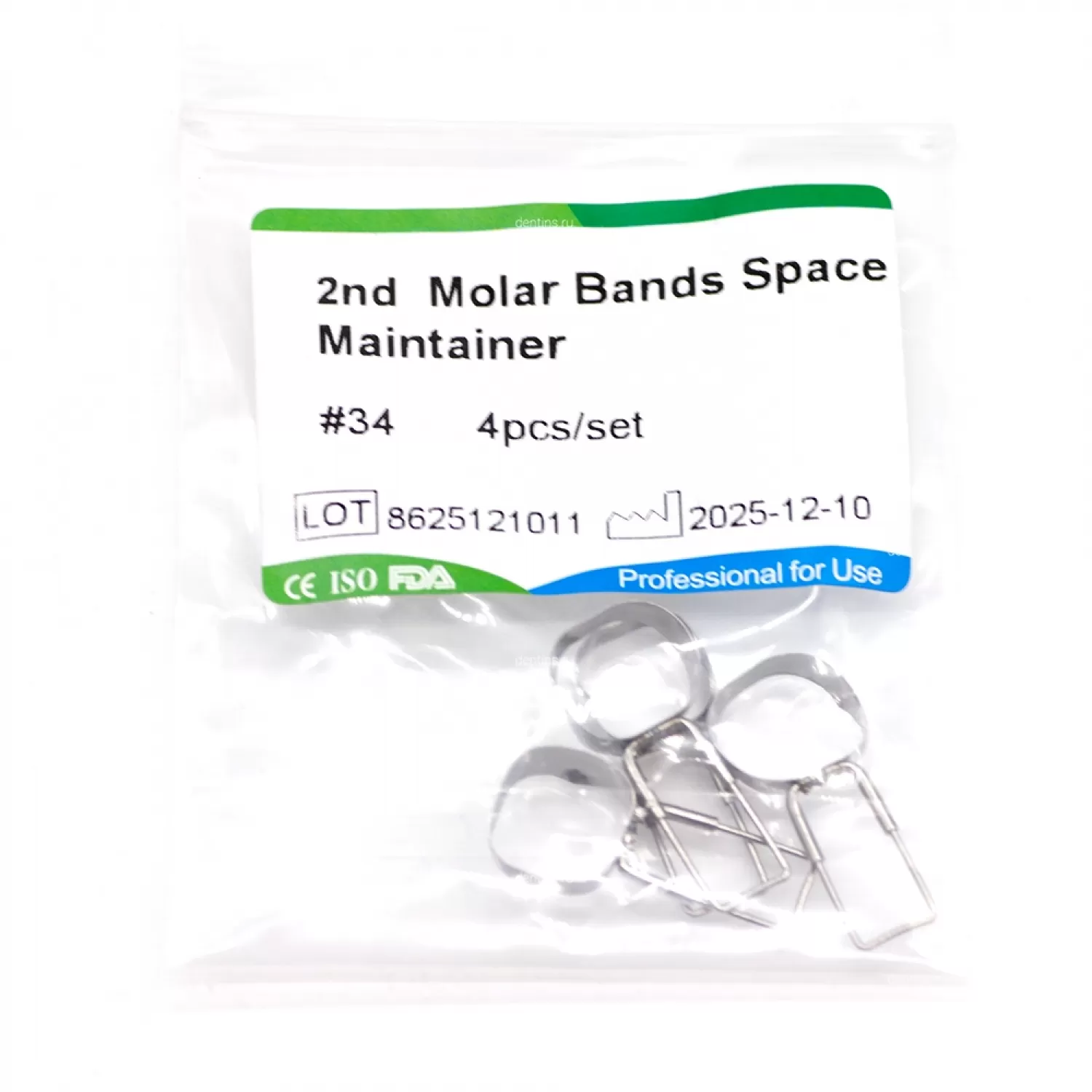 В комплекте ортодонтические кольца с петлей 34 размера - 4 шт.