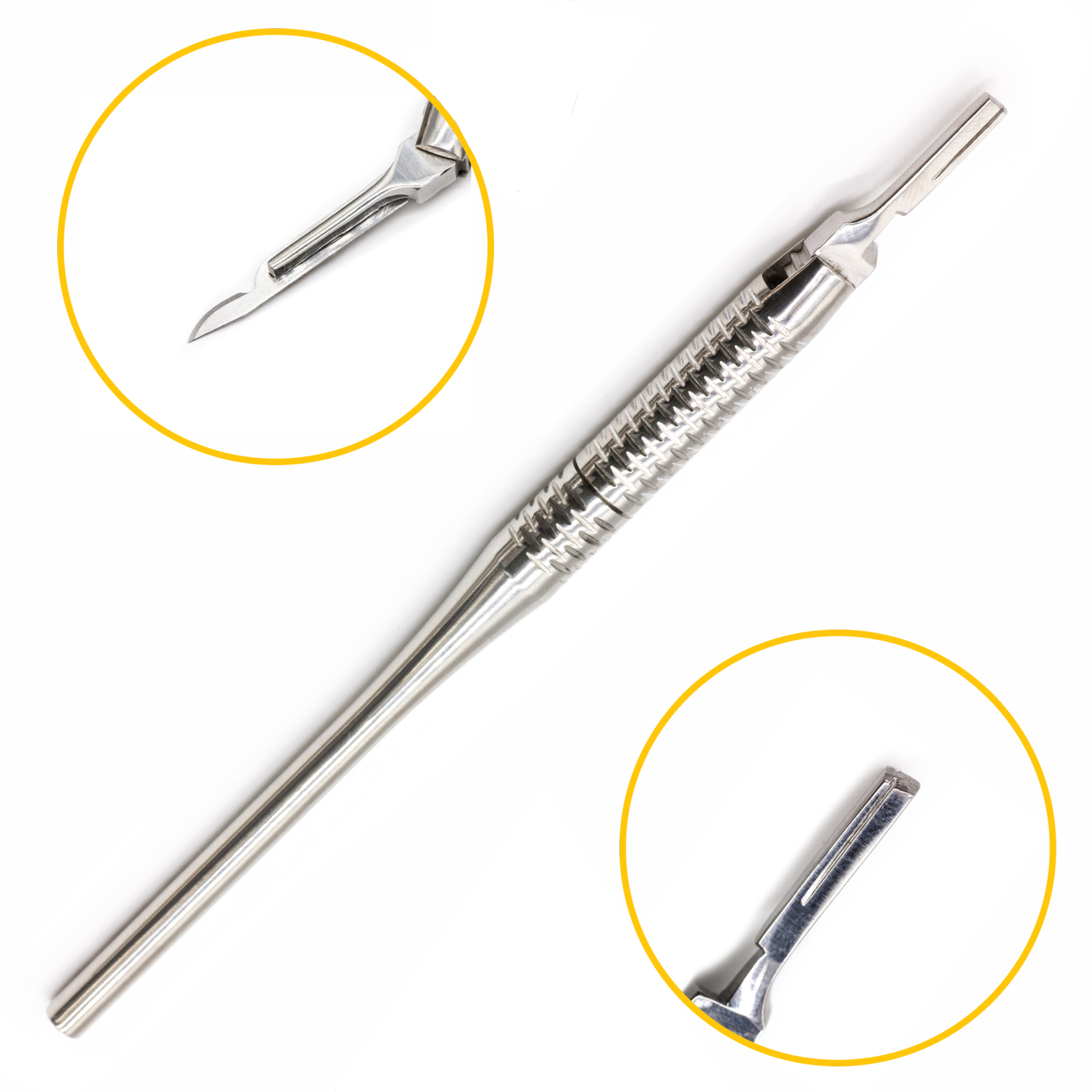 Большинство хирургических вмешательств, включая стоматологические процедуры, начинаются с рассечения мягких тканей. Данная манипуляция выполняется посредством скальпеля. В целях обеспечения безопасности и соблюдения санитарно‑гигиенических норм предусматривается одноразовое использование лезвий этого инструмента. Для надежной фиксации лезвий в процессе хирургических манипуляций применяются многоразовые рукоятки для скальпелей. Этот инструмент находит применение не только при оперативных вмешательствах, но и в иных процедурах - например, при снятии швов.