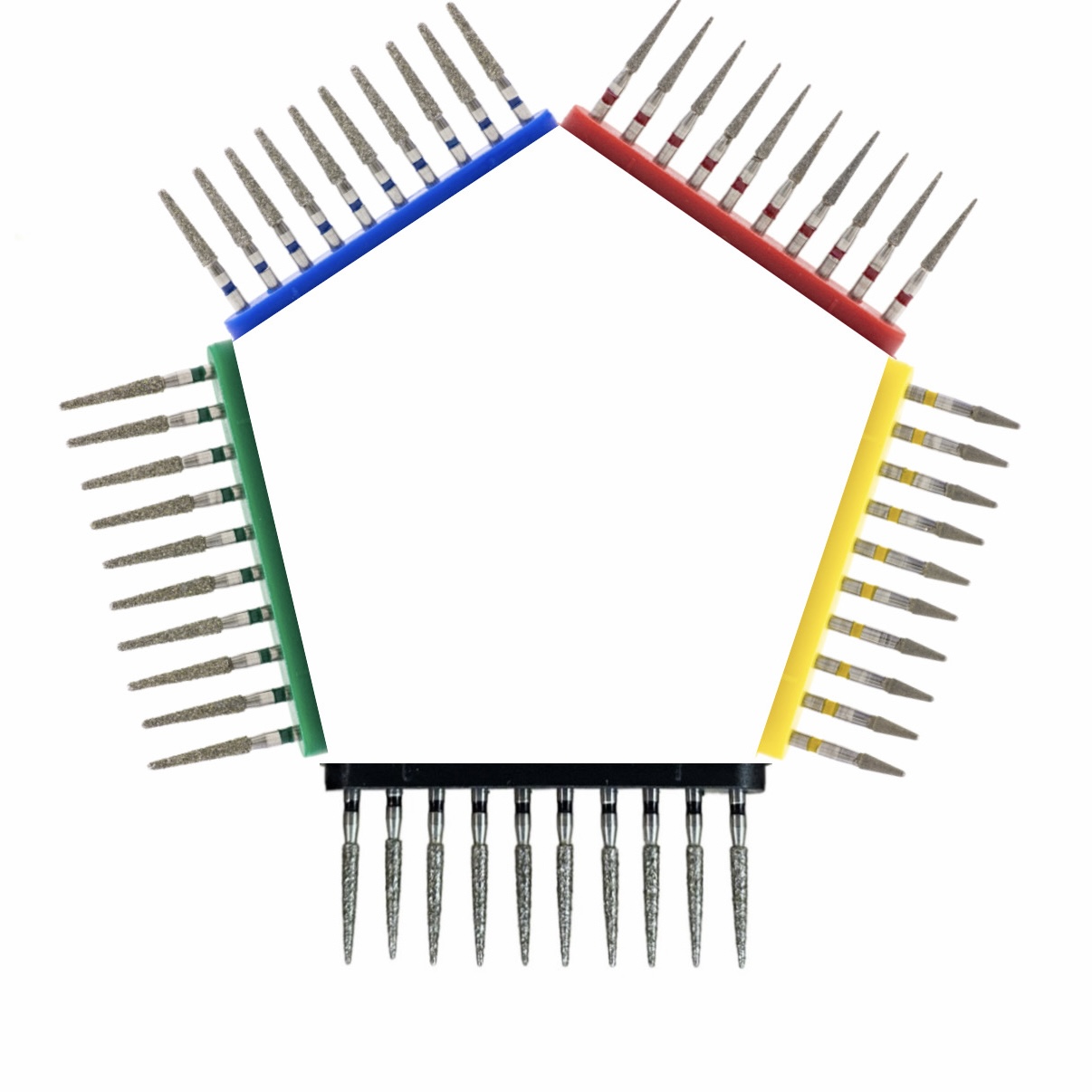 Выбор бора для каждого этапа стоматологического лечения осуществляется с учетом специфики планируемого вмешательства и индивидуальных особенностей пациента. Для упрощения визуального подбора инструмента применяется система цветовой маркировки, которая одновременно выполняет функцию классификации боров по степени абразивности.