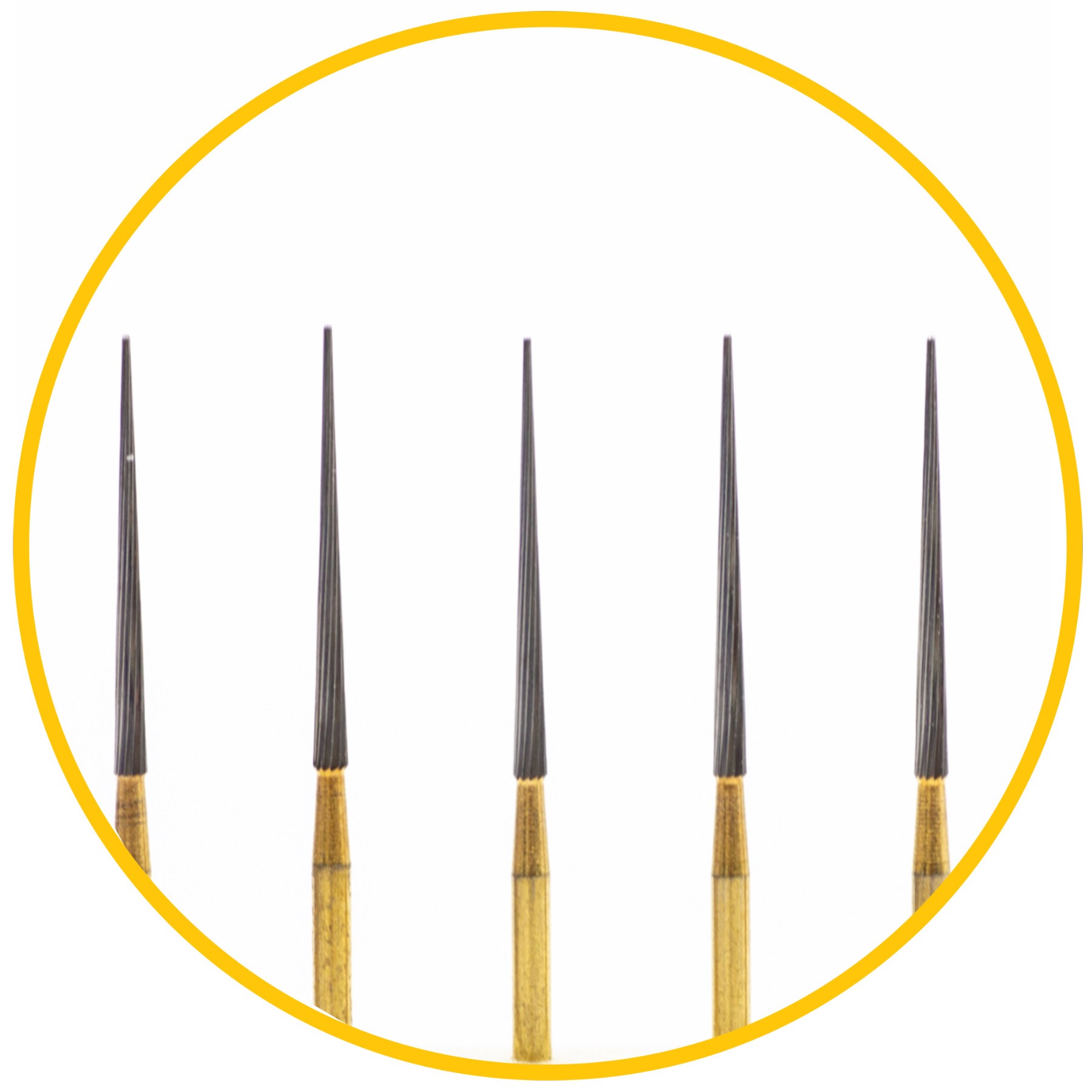 Боры финишные используются для полировки и окончательной обработки реставраций и зубных тканей. Они помогают убрать мелкие неровности после препарирования эмали, благодаря чему композитный материал лучше прилегает к зубу. Боры имеют вытянутую конусообразную форму с заостренным кончиком и характеризуются различной степенью абразивности - от тонкой до сверхтонкой.