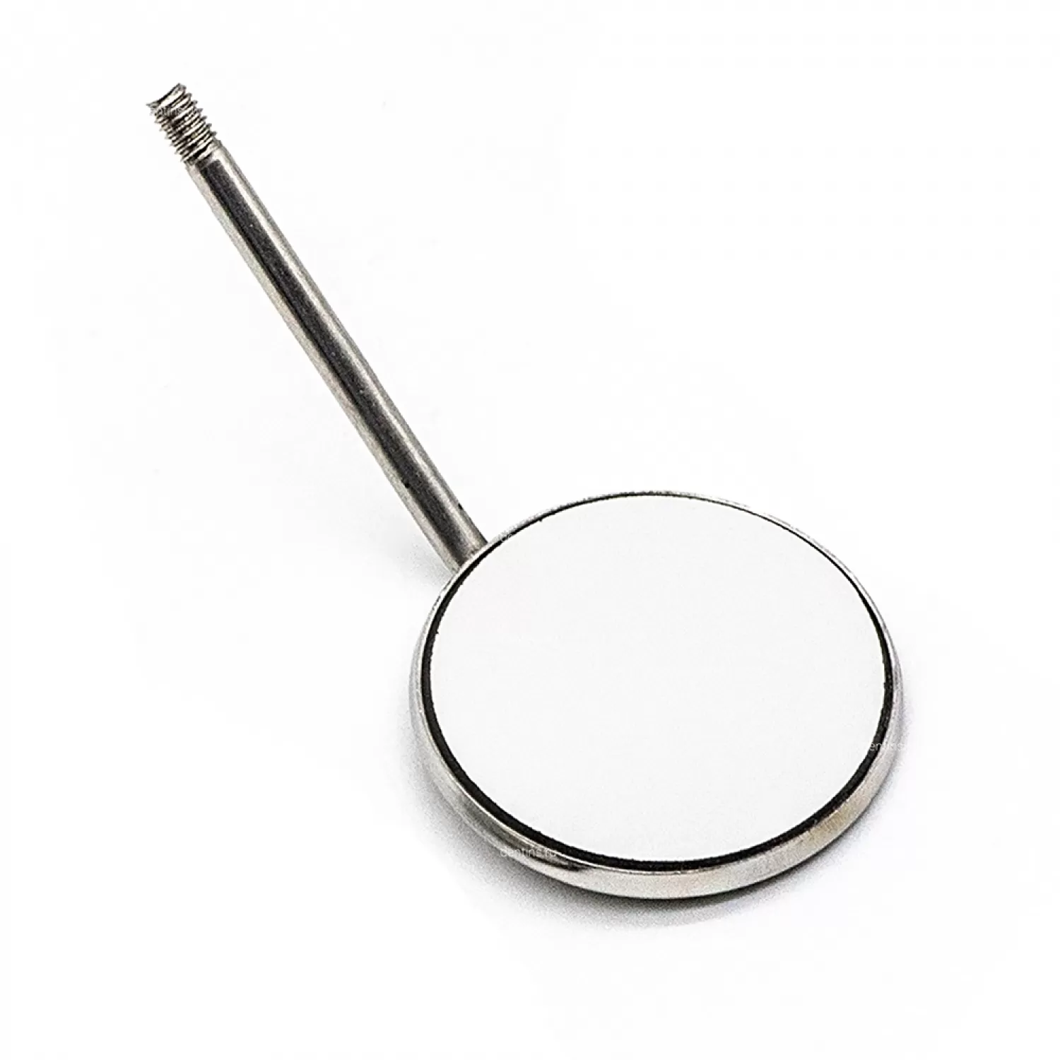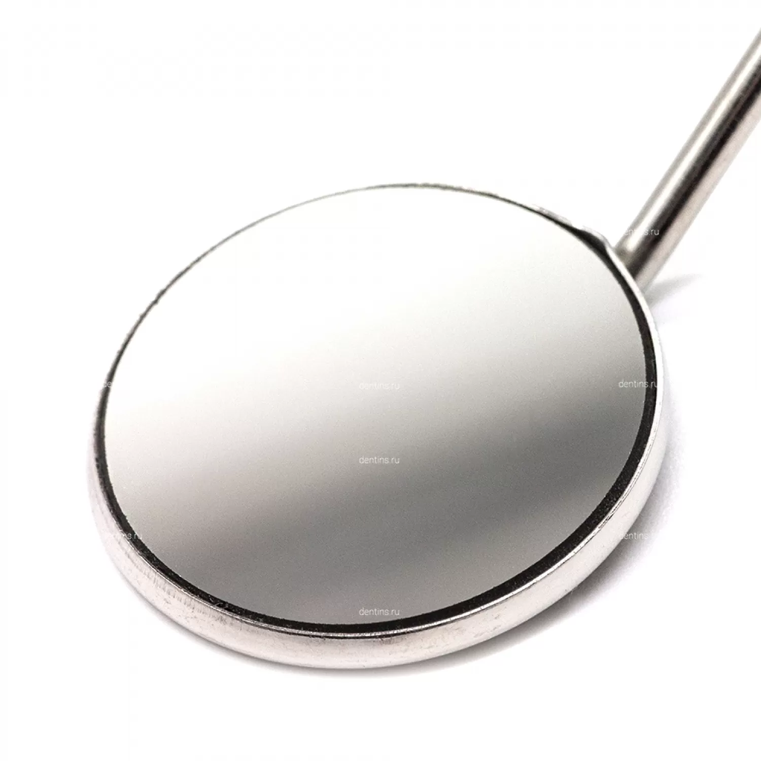 Родиевое покрытие зеркала с ручкой, одностороннего, 24 мм позволяет ему иметь переднюю отражающую поверхность, что обеспечивает отсутствие искажение осматриваемой зоны, а также более комфортно работать с увеличением и микроскопом.