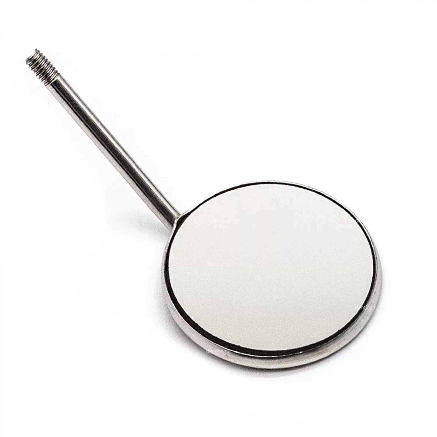 Родиевое покрытие зеркала с ручкой, одностороннего, 26 мм позволяет ему иметь переднюю отражающую поверхность, что обеспечивает отсутствие искажение осматриваемой зоны, а также более комфортно работать с увеличением и микроскопом.