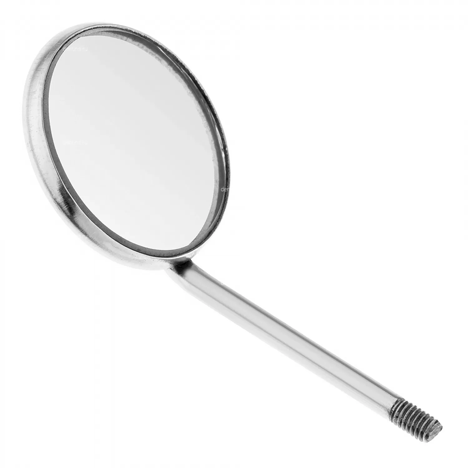 Рабочая часть зеркала расположена по отношению к держателю под тупым углом, что способствует осмотру труднодоступных мест в ротовой полости. Также стоматологический инструмент служит для отведения и удержания мягких тканей.