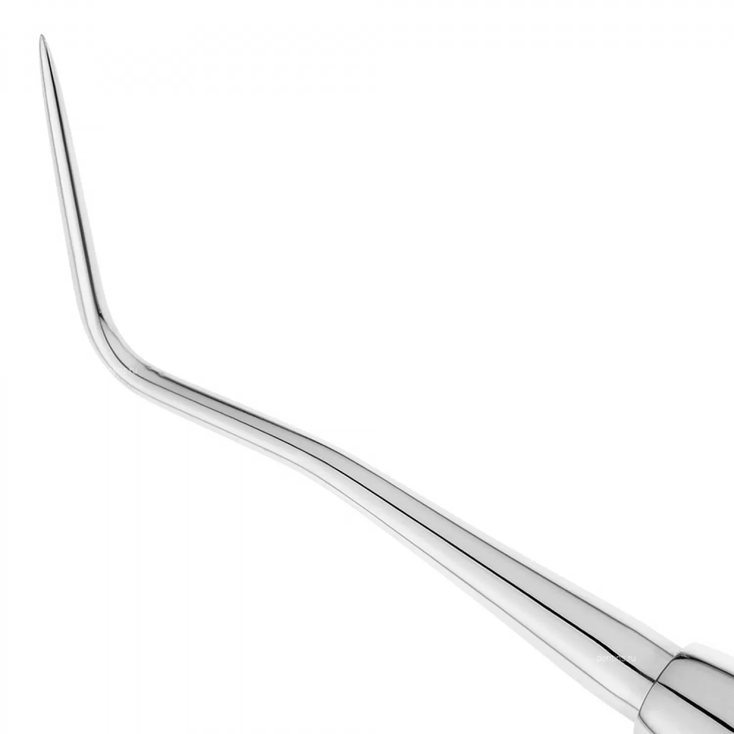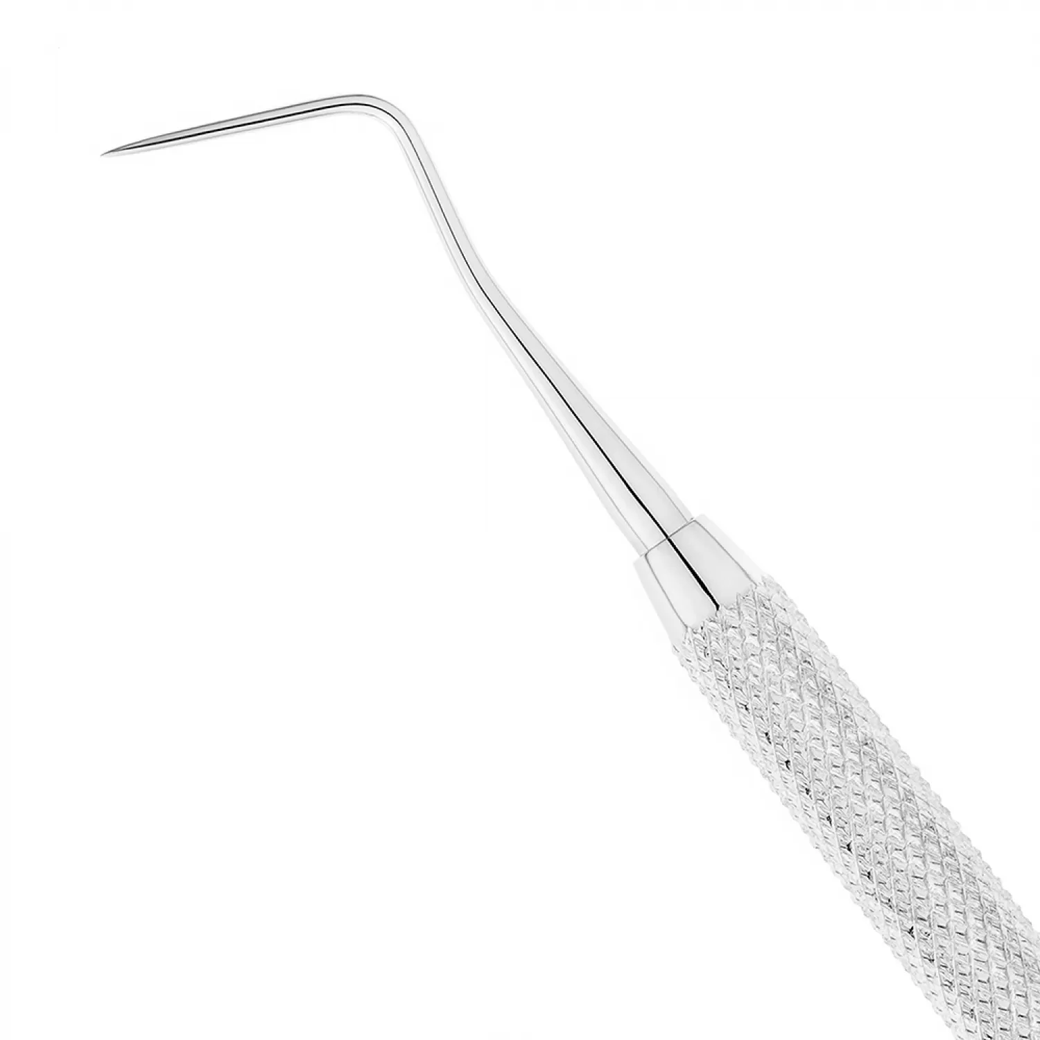 Для тщательного обследования ротовой полости и каждого зуба в частности односторонний зонд имеет заостренный кончик и изгибы по ребру. Такая конструкция инструмента позволяет не упустить даже едва заметный кариес или зубные отложения.