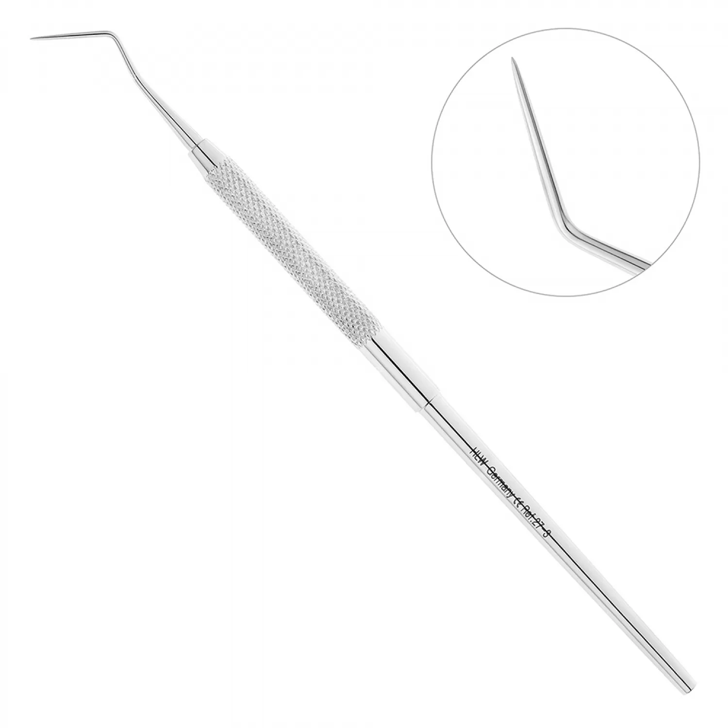Для диагностических исследований используется стоматологический зонд формы №9 торговой марки HLW Dental Instruments.